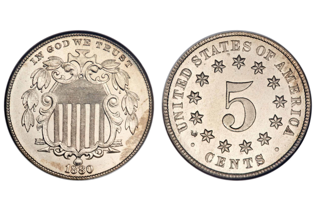 - Produced in Philadelphia without a mint mark, Shield nickels are common, starting at $18 for heavily worn coins. However, rarer dates from 1879 or 1880 can be worth $200 to $1,000. Notable sales include the 1880 Shield nickel, which sold for $20,000.