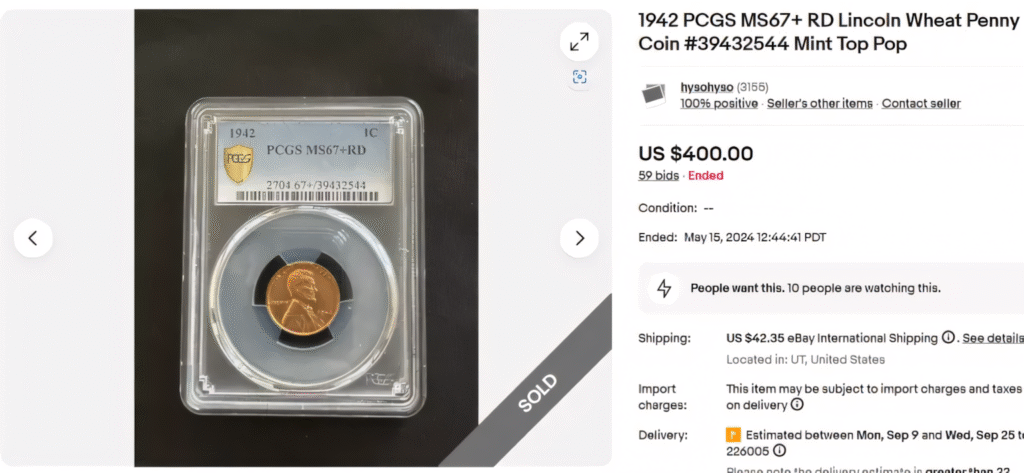 This 1942 Lincoln Wheat Cent graded PCGS MS67+ RD represents the pinnacle of quality for this issue, selling for $400 – nearly 4,000 times face value. Here’s what makes this coin special and how to identify similar high-value pennies in your collection.