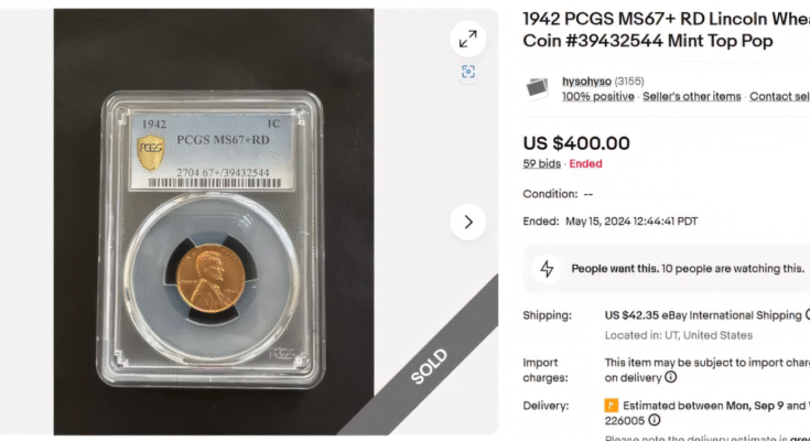 This 1942 Lincoln Wheat Cent graded PCGS MS67+ RD represents the pinnacle of quality for this issue, selling for $400 – nearly 4,000 times face value. Here’s what makes this coin special and how to identify similar high-value pennies in your collection.