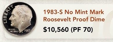 2. The 1983-S No Mint Mark Proof Dime: Perfection Worth $10,560